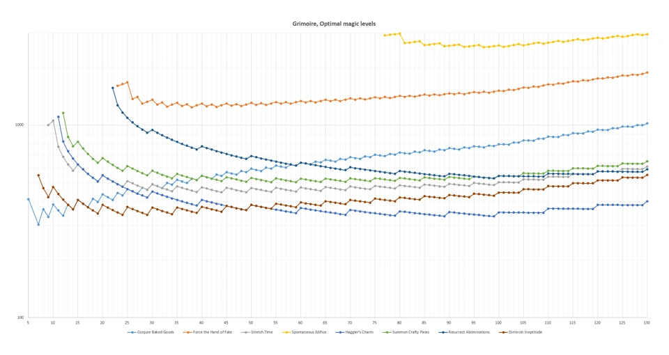 With this information, we can see that casting Haggler's Charm with 99 max magic is the fastest way to cast spells, but casting Conjure Baked Goods with low max magic is a good alternative while remaining useful in getting cookies.