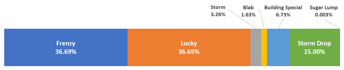 | Frenzy=Lucky=C. Frenzy | Storm | Blab | Building | StormDrop | Sugar | |